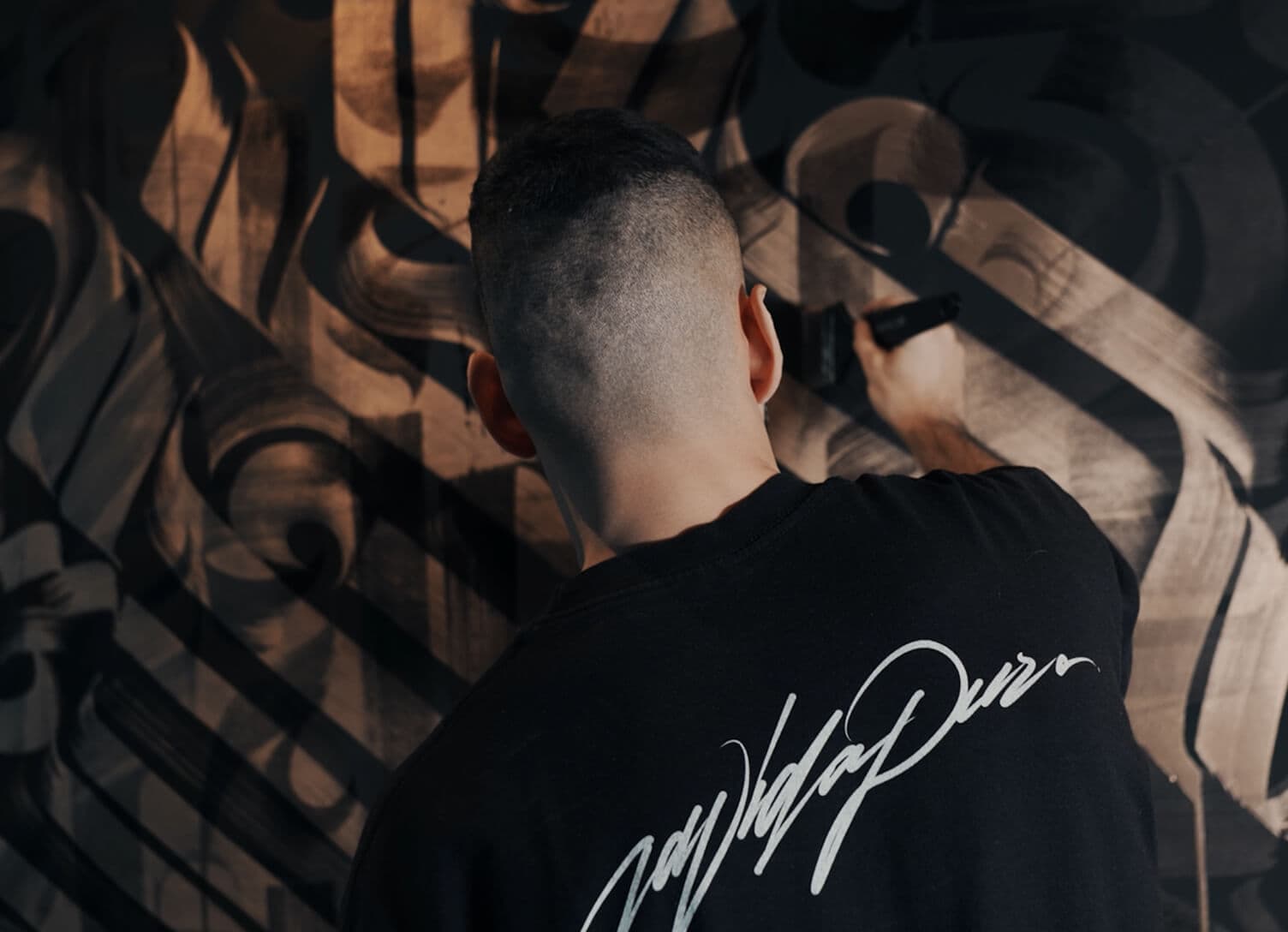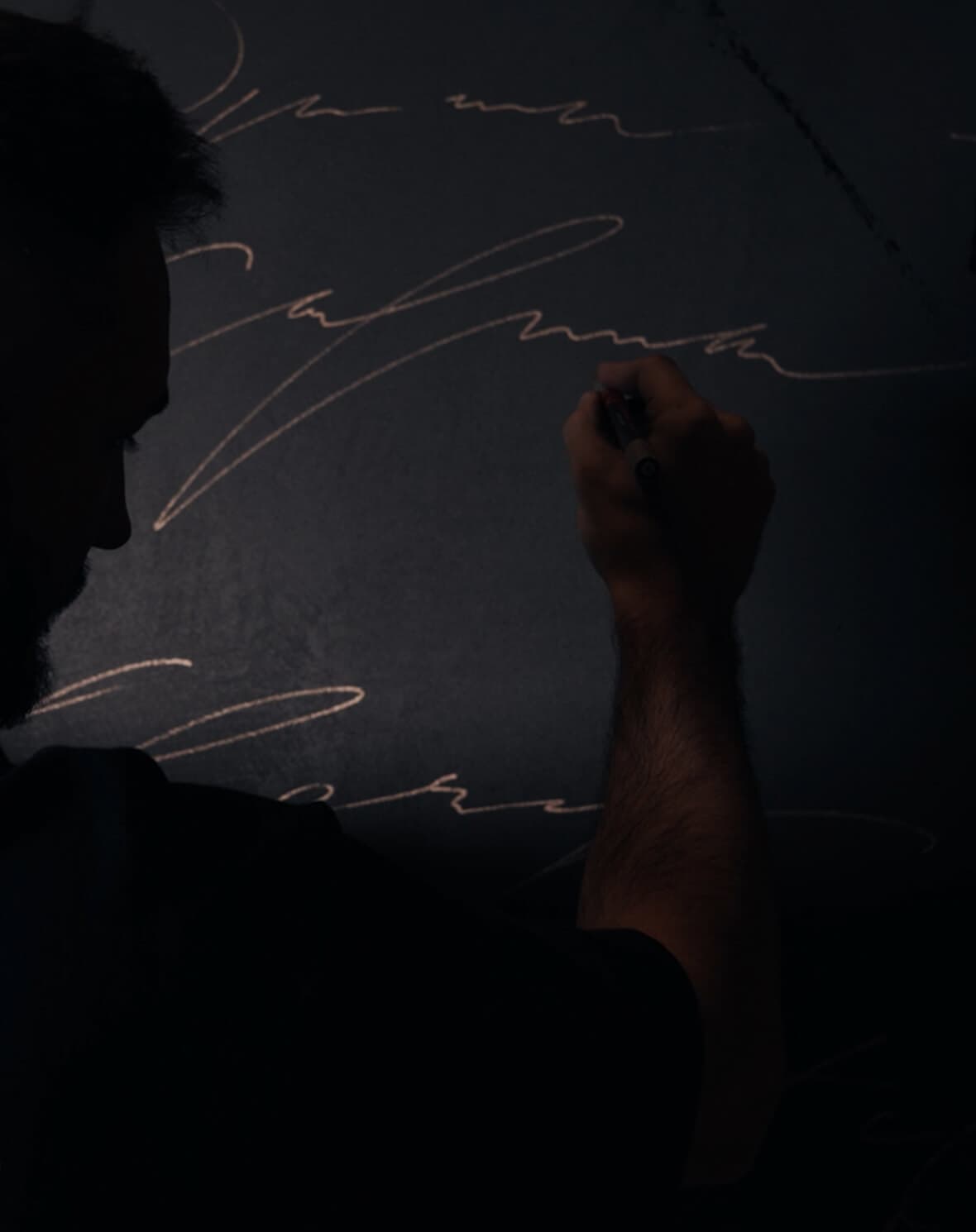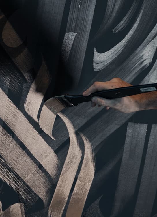 In this quiet haven, black glass panels divide space with a deliberate elegance, carrying my pale strokes like whispers suspended in air. The mural sharpens the serenity of the room, turning stillness into an experience shaped by contrast, clarity, and intention.